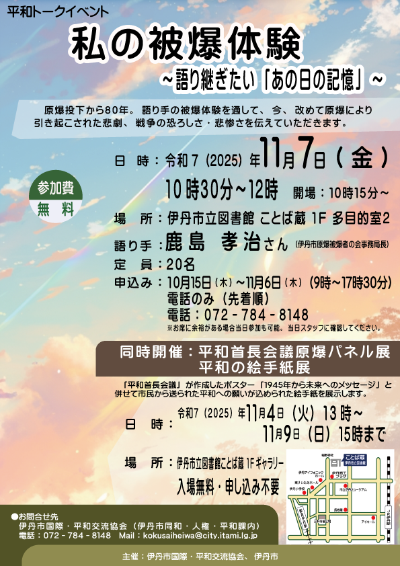 平和トークイベント私の被爆体験 語り継ぎたい「あの日の記憶」と平和首長会議原爆パネル展と平和の絵手紙展
