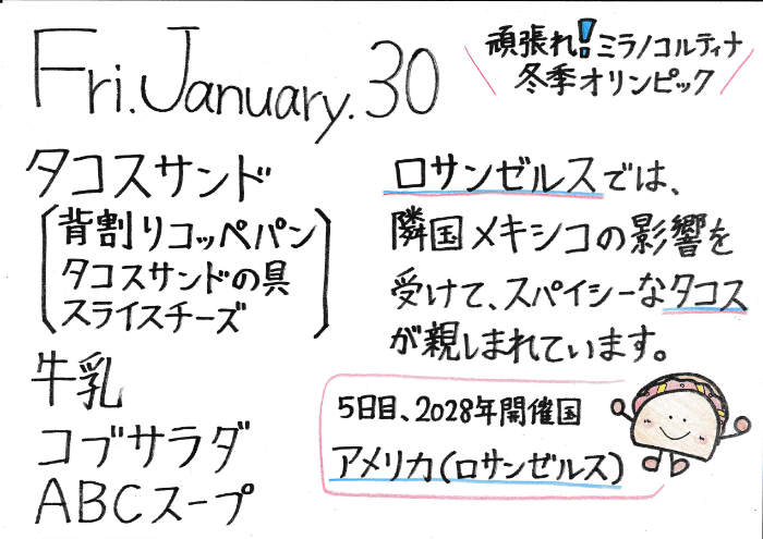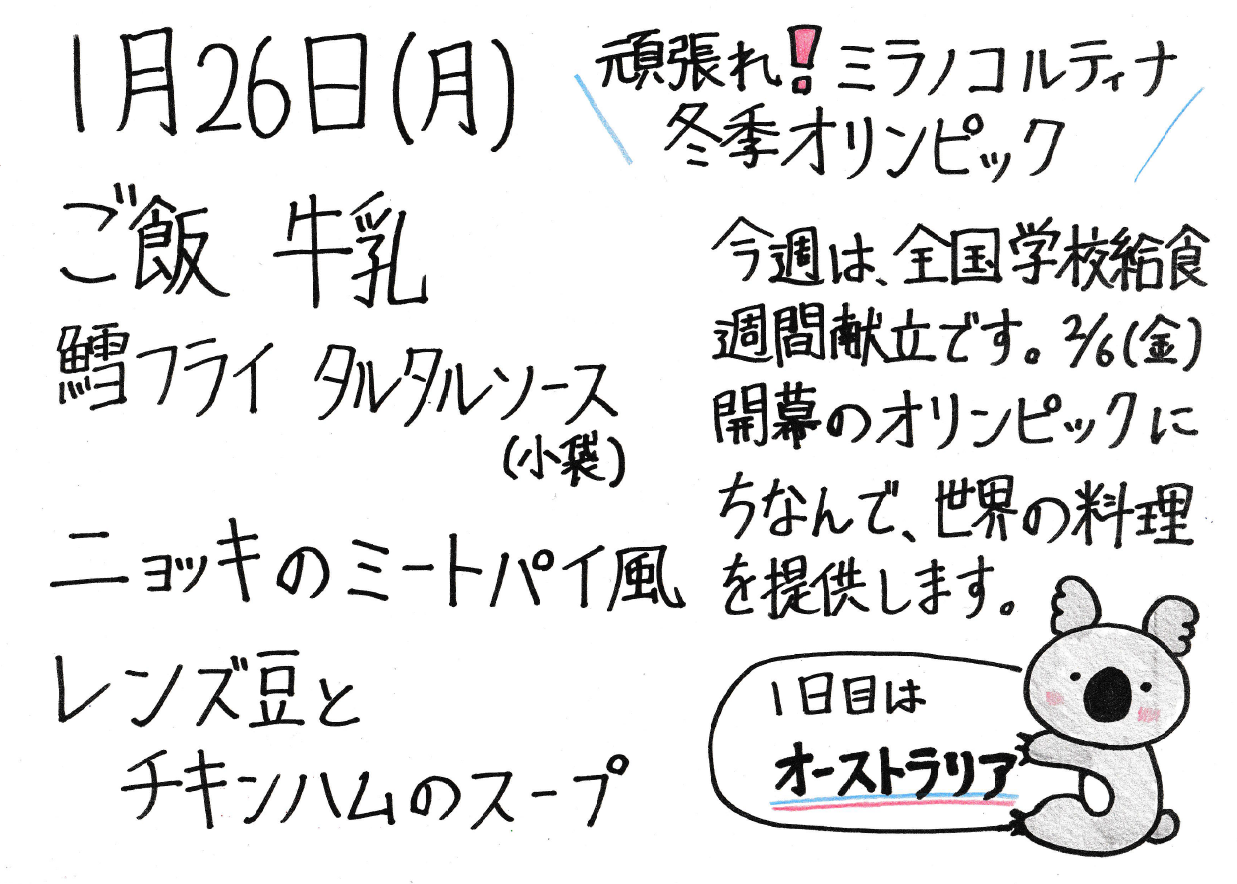 今日の給食(中学校給食センター)令和8年1月 Tweet 更新日:2026年01月30日 今日の給食(1月30日) 今日の給食(1月29日) 今日の給食(1月28日) 今日の給食(1月27日) 今日の給食(1月26日) 今日の給食(1月23日) 今日の給食(1月22日) 今日の給食(1月21日) 今日の給食(1月20日) 今日の給食(1月19日) 今日の給食(1月16日) 今日の給食(1月15日) 今日の給食(1月14日) 今日の給食(1月13日) 今日の給食(1月9日) 今日の給食(1月8日) アレルギーに関すること(中学校給食センター) 作ってみよう簡単レシピ(中学校給食センター) 中学校給食のレシピ集