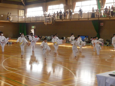 続いて、来賓及び各協会の会長の紹介があり、空手道協会をスタートに各協会による演武が披露されました。躍動感のある動きや気迫に満ちた姿がとても印象的でした。また、小学校低学年の武道に親しむ子が多いことに驚きました。武道は、我が国固有の文化であり、自らを律する克己の心や互いに相手を尊重する態度を育み豊かな人間性を育む力があります。武道を通じてこのような資質を磨いていただきたいと思います。