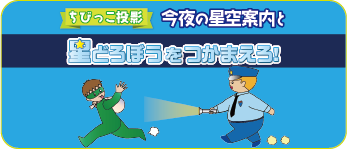 1月~3月22日のおはなしは「星どろぼうをつかまえろ!」です。夜空に輝く「冬のダイヤモンド」が盗まれた!みんなで星どろぼうをつかまえよう!