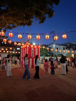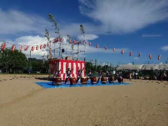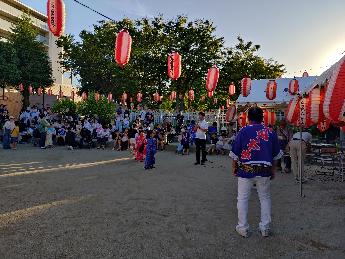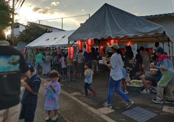 地域住民の方々は毎年楽しみにされている様子で、子どもから大人まで、たくさんの方が来場され、盆踊りの輪が広がり、また模擬店でゲームをしたり、ジュースを購入したり、スポーツをしたり、様々な催しを楽しんでおられました。