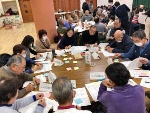 地域住民50名に市・社協からの応援メンバー加え総勢60名でのグループトーク。