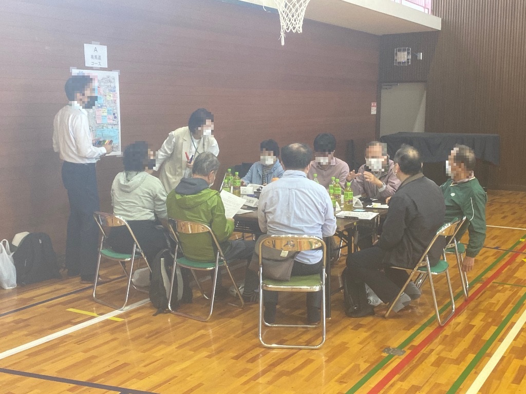 歩いた後は、鈴原小学校に再集合し、各コースを歩きながら気付いた良い点や課題、問題点、提案などを点検・記録し、それらを各グループで地図上に落とし込み、各グループで発表し、全体で共有しました。
