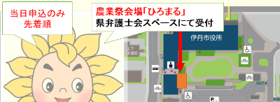 - 場所 伊丹市役所 ひろまる 農業祭開催中の弁護士相談受付コーナーにて