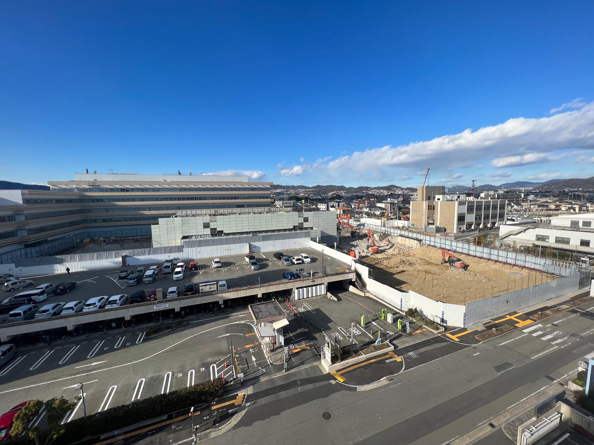 旧庁舎高層棟の躯体解体を進めています。解体方法は「階上解体」と言われる方法で、建物の上層階から解体を行い、下層階へと進めていきます。旧医師会エリアでは建物を支えていた地中杭の撤去を行っています。
