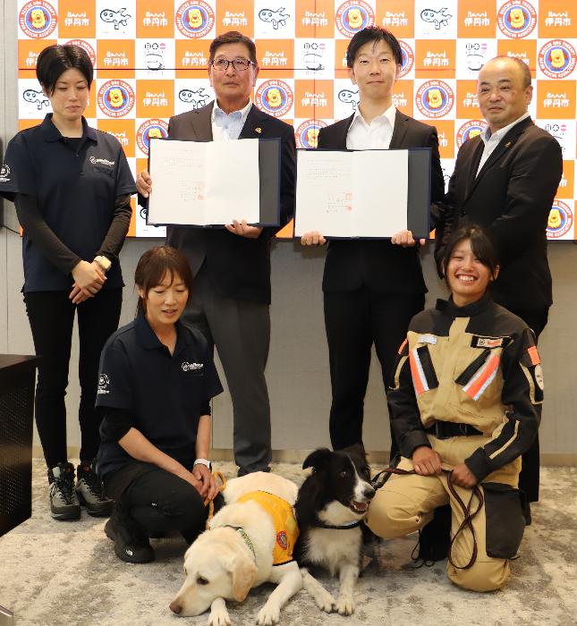 市は、災害が発生した場合、災害救助犬による被災者の捜索活動を円滑に実施するとともに、セラピードッグを派遣することで、避難所や仮設住宅等における被災者の心のケアを図るほか、避難所における被災ペットの飼育支援を行うことを目的に、「災害時における災害対応支援に関する協定書」を認定NPO法人日本レスキュー協会(下河原2)と締結しました。