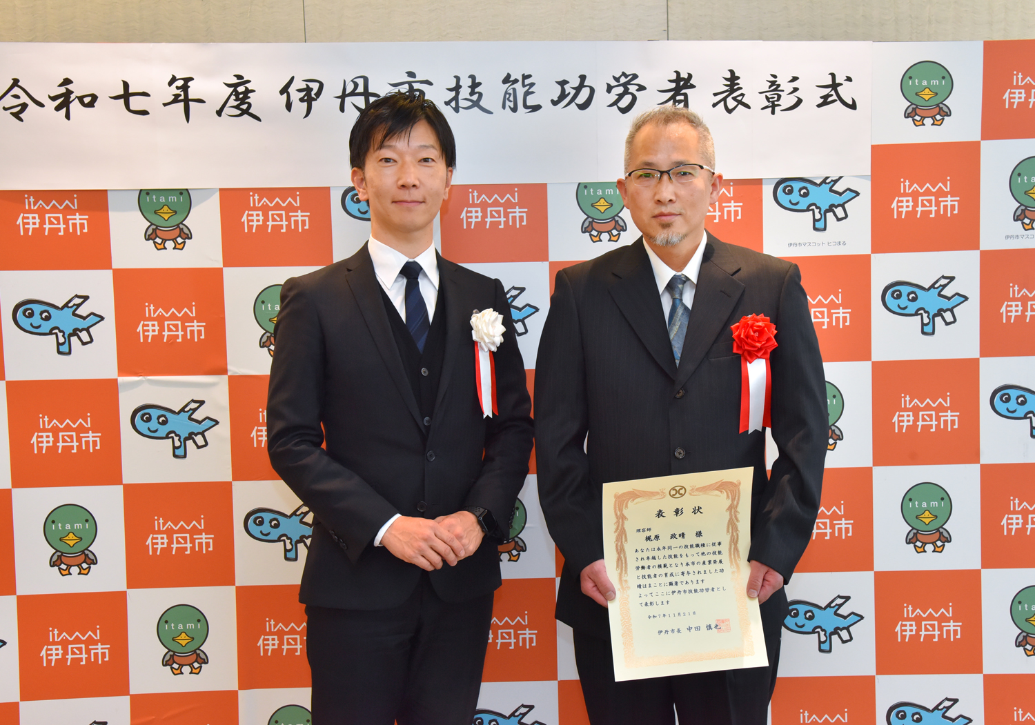 令和7年11月21日(金曜)、伊丹市役所において技能功労者表彰式を開催し、今年度は3名の方が表彰されました。表彰された方々は次の通りです。