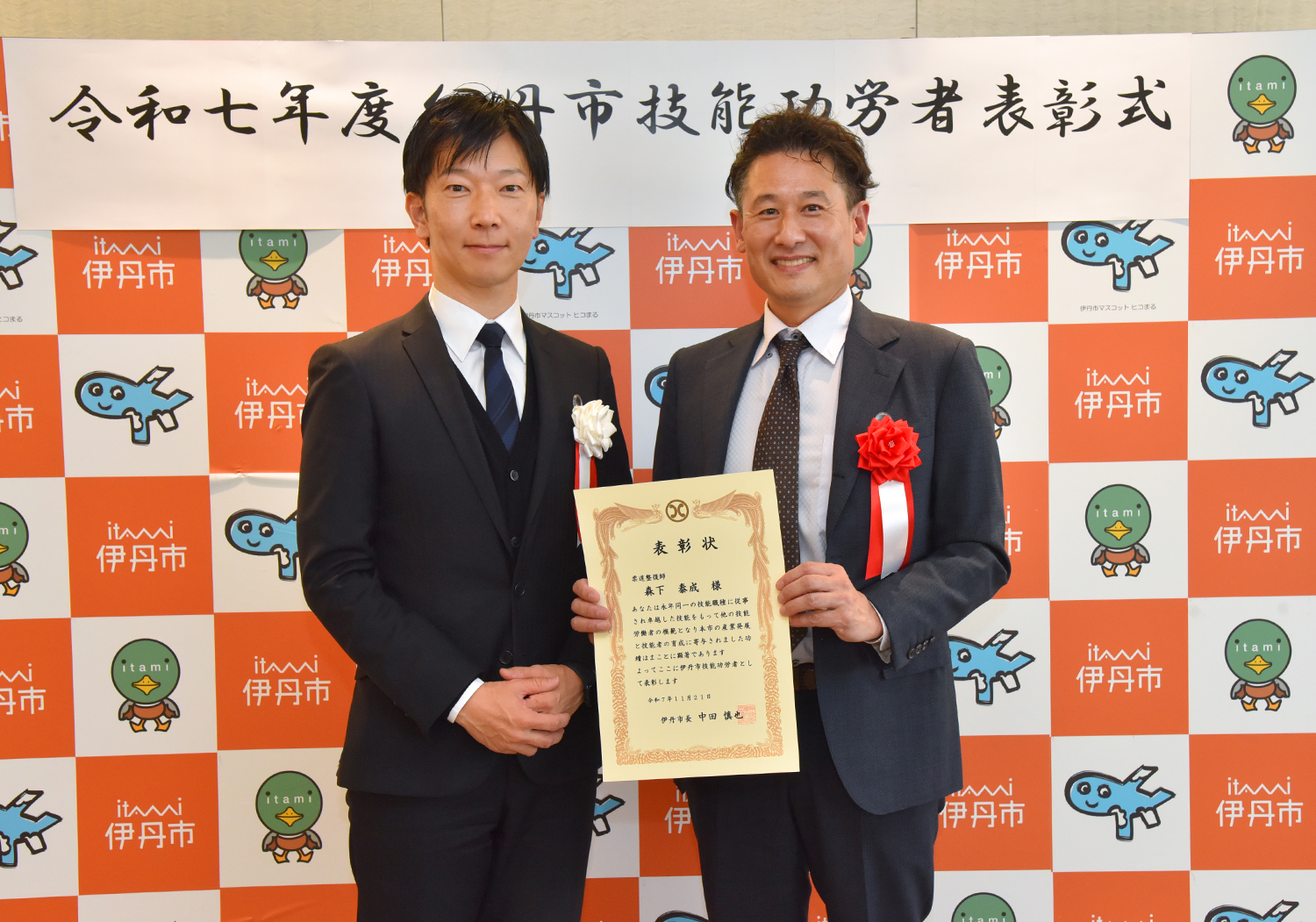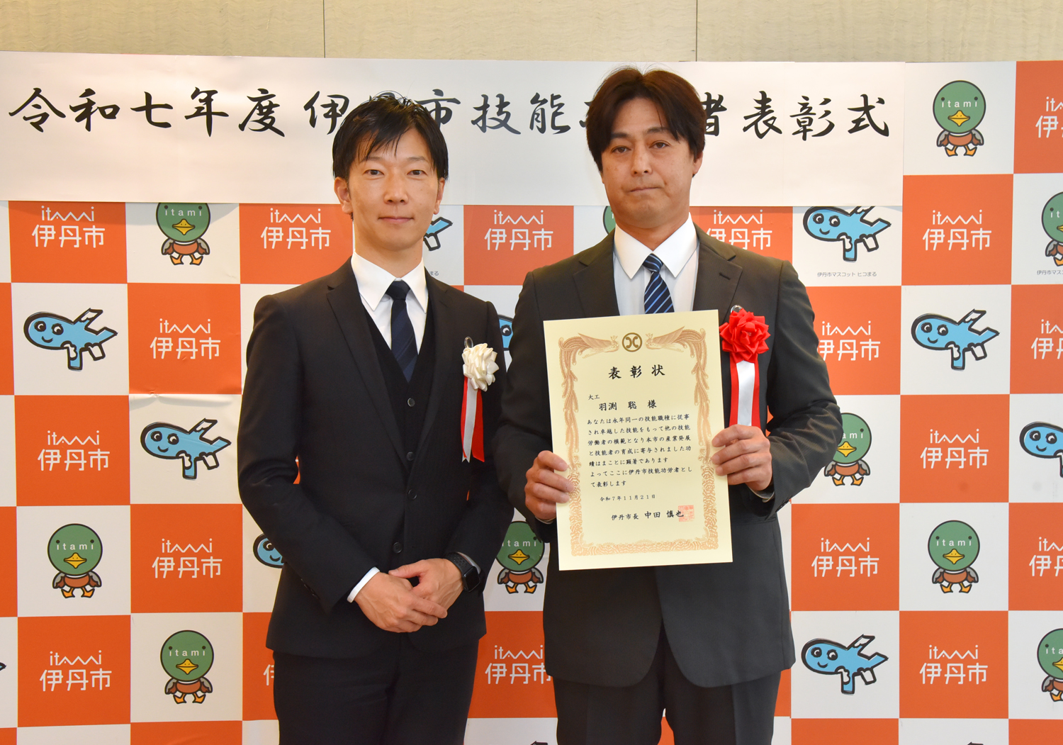 伊丹市では、永年同一の職種に従事し、優れた技能をもって社会に貢献した人々の功績をたたえ、技能労働者の社会的地位及び技術水準の向上を図ることを目的とした技能功労表彰を実施しています。