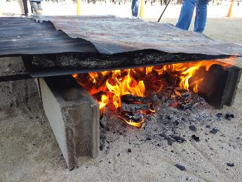 恒例となったやきいも大会は今回も大盛況で、昨年よりも多く用意した1500本のサツマイモは、濡れた新聞紙で包んでからアルミホイルで巻き、大きな鉄板の上で焼き上げられました。各自治会の方々のボランティア協力を得て、チームで火の当番を行い、しっかり中まで美味しく焼けているか確認されていました。また、自治協青少年部とPTAの方々が受付やきめ細やかな準備、参加者へやきいもを渡してくださるなど、多くの方々でやきいも大会を運営され、参加者のたくさんの笑顔を見ることができました。